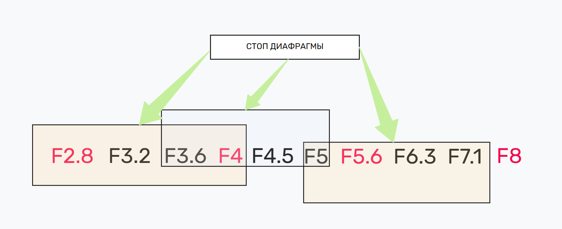 Важно понимать, что любые 4 числа диафрагмы, при условии разбивки стопа по третям – составляют стоп.