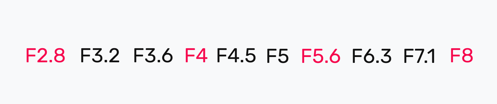 Диафрагменные числа выстроены в ряд таким образом, что, переходя от одного числа к другому вы тем самым меняете яркость света, потому что изменение числа диафрагмы это есть изменение диаметра диафрагмы, который, в свою очередь, меняет яркость проходящего света. Например, если у вас стоит на камере F2.8, а вы установили (закрыли) на F4, тем самым вы уменьшили яркость света, падающего на сенсор в 2 раза.