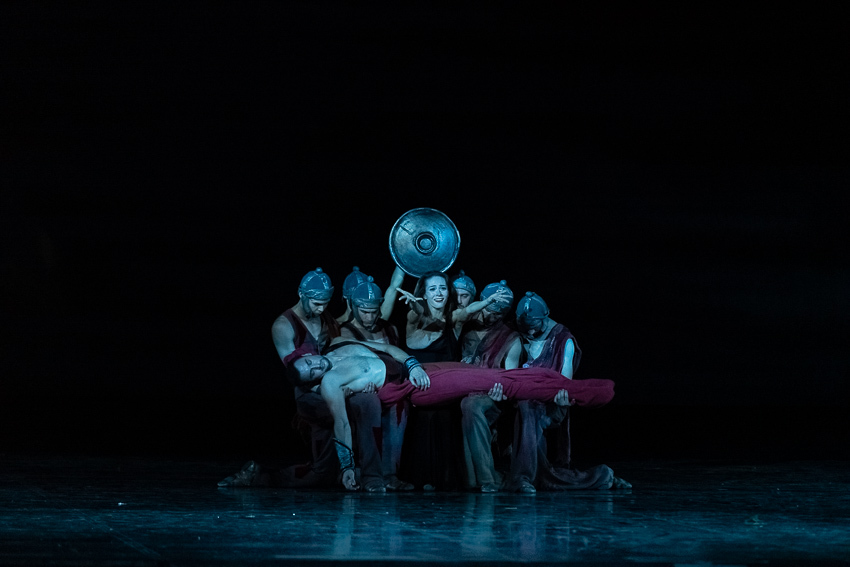 Анализ освещения в примере: сцена равномерно залита светом, что создает яркую и насыщенную атмосферу. Однако декорации фона все же притемнены примерно на 0,5-1 EV, что позволяет сосредоточить внимание зрителя на солисте и кордебалете.